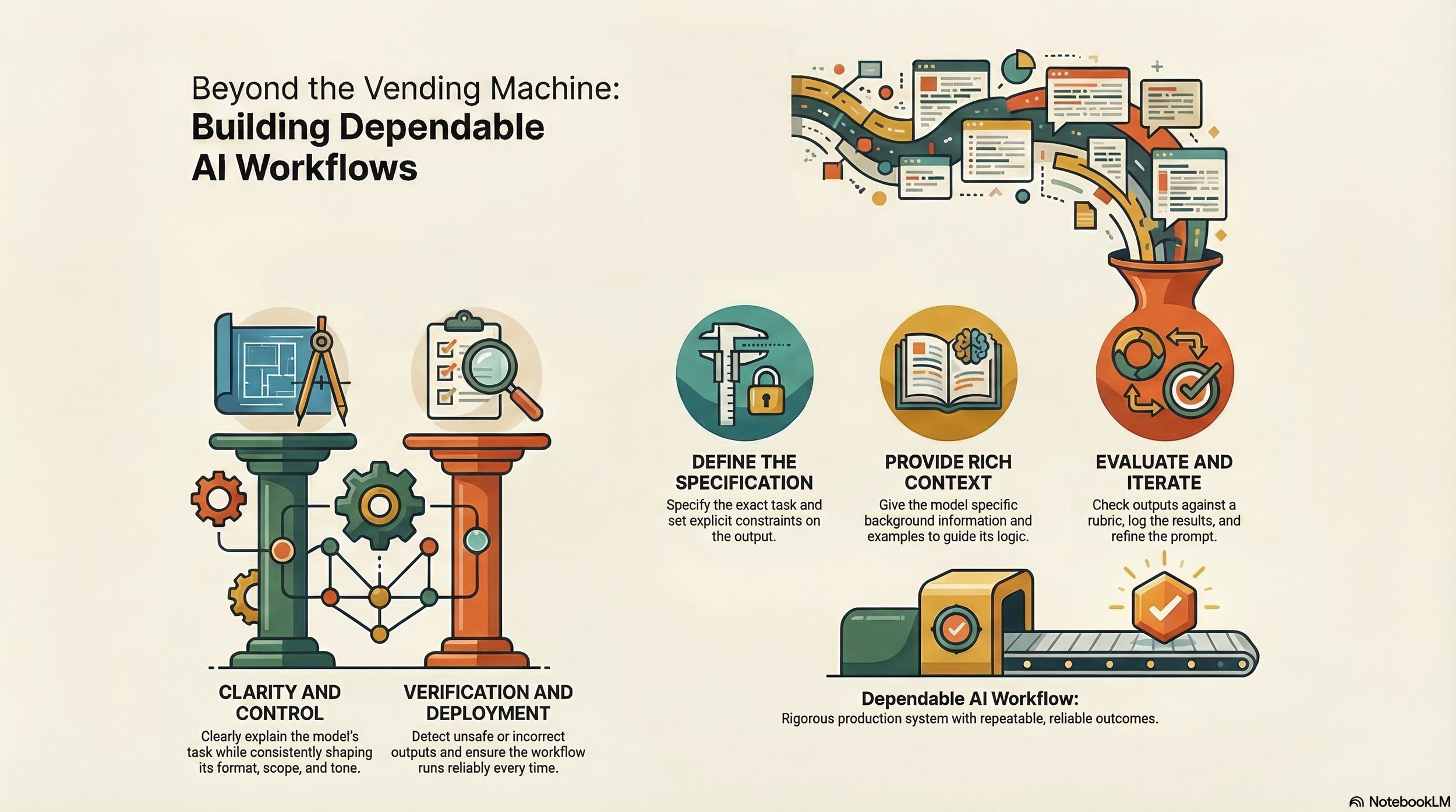 The goal is not “better prompting.” The goal is dependable outcomes: